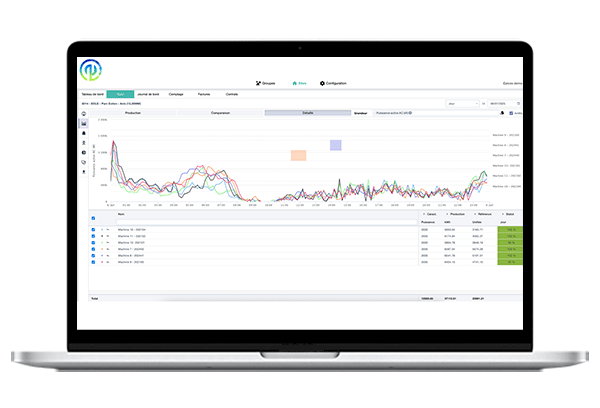 La solution Épices présente différents graphiques pour faciliter la visualisation des données que vous souhaitez analyser sur un parc éolien. Les tableaux de bord permettent à tout utilisateur de comparer les machines entre elles, ou alors les turbines d’un parc éolien.